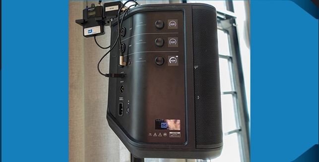 Seit vielen Jahren setzen wir für dezentrale Beschallungsaufgaben in Foyers, Cateringbereichen etc. Akkulautsprecher von BOSE ein. Dazu haben wir nun ein Gerät entwickelt, diese mit einer aus dem Akku gespeisten hochwertigen Shure Funklösung zu verbinden. So können wir unkompliziert abgesetzte Beschallungen realisieren.
