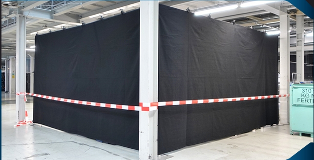 Einsetzbar als Hintergrund, Dekoration oder Raumtrenner mit verschiedenen Vorhangstoffen. Bsp. Fadenvorhang weiß, Moltonstoff schwarz, Samtvorhang etc.